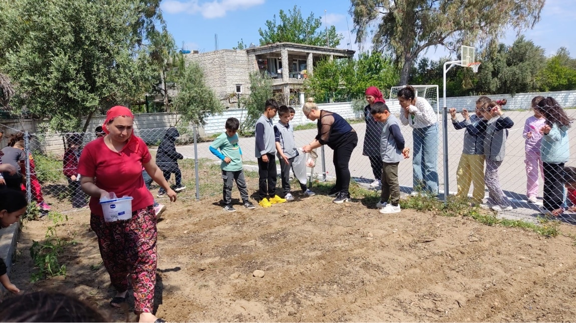 İLKOKUL ÖĞRENCİLERİMİZ AİLELERİ İLE OKULUMUZUN HOBİ BAHÇESİNE FİDAN DİKİMİ VE TOHUM EKİMİ GERÇEKLEŞTİRDİLER.